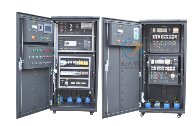 1.本裝置采用標準配電柜為主體柜,充分利用該柜雙面空間位置,其中裝有可方便拆卸的電源控制、交直流電源、測量儀表、低壓電氣器件,另一面裝有PLC模擬量模塊、變頻器、直流調(diào)速模塊、機床智能考核,該配電柜占地面積小,外形美觀;2.電氣控制線路元器件都裝在電氣柜內(nèi)部,配有布線槽、接線端子;通過端子學(xué)生可自行接線、布線,構(gòu)建控制系統(tǒng),實訓(xùn)特點明顯,同時具有一定的擴展性;